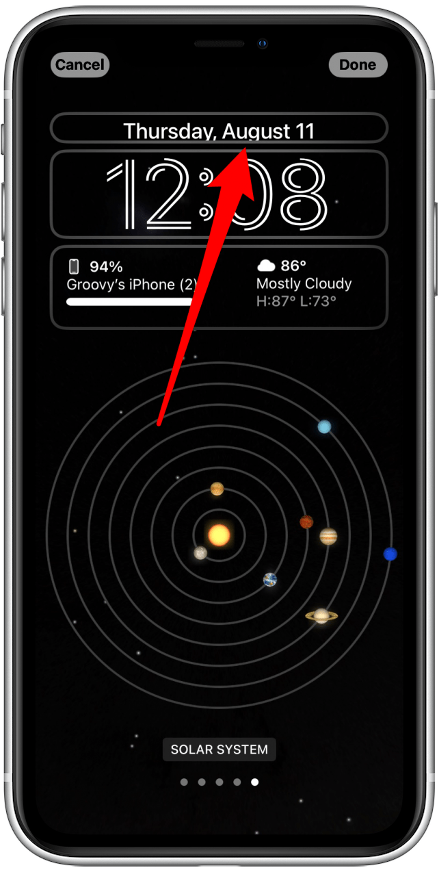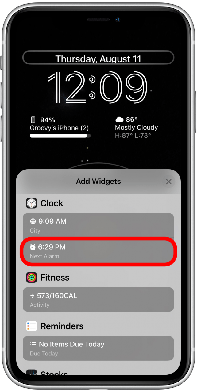 - Next, tap the rounded rectangle below the time.