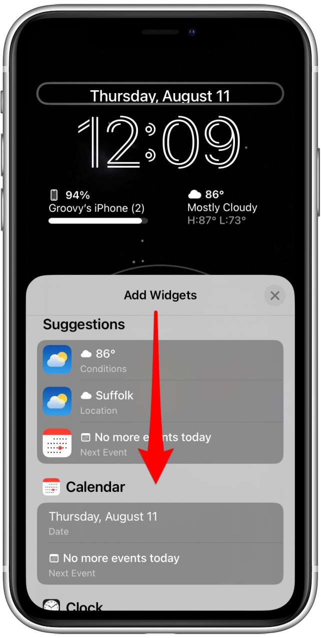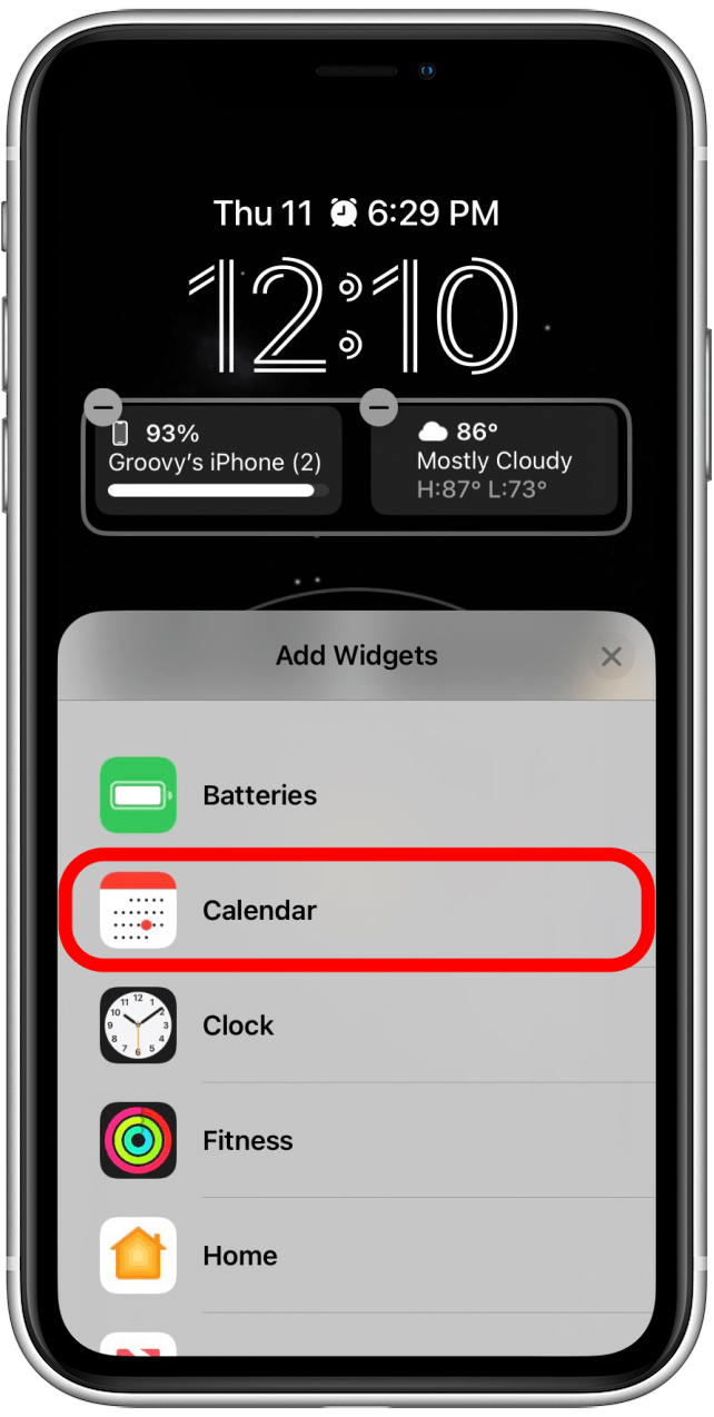 - Tap one of the two areas where you can add widgets. I’ll start by tapping the date.