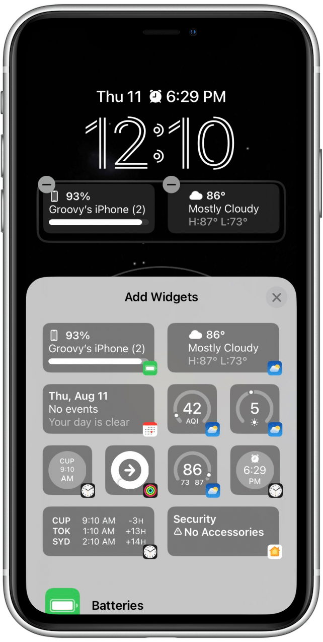 Do you want to load your lock screen up with at-a-glance information from your favorite apps? You can add widgets to your Lock Screen to do just that. The widgets display information such as weather, stock information, and battery level on your Lock Screen, so you don't have to go to an app to check for information. Here's how to add widgets to your iPhone's Lock Screen.