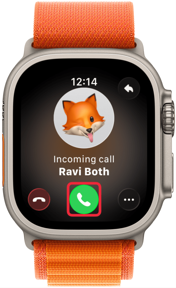 - Answer the call by tapping the green phone button on your watch face. Or make the call from your Apple Watch like you normally would.
