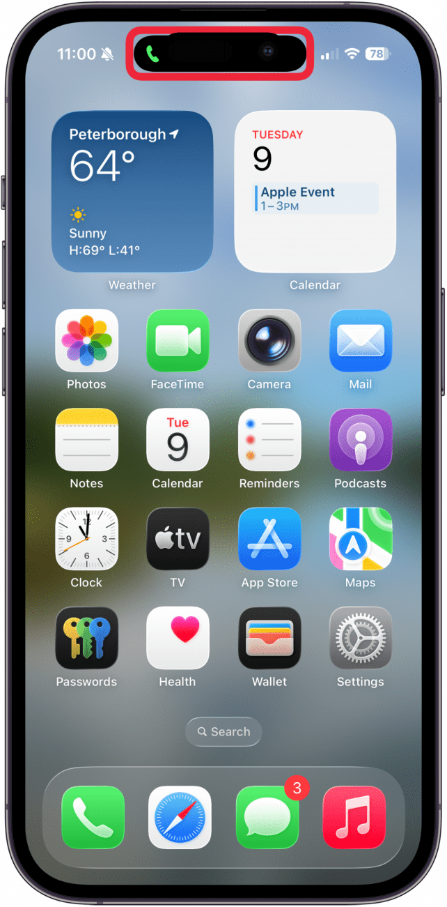 On older iOS versions or iPhones without a Dynamic Island, the green icon may look more like this: