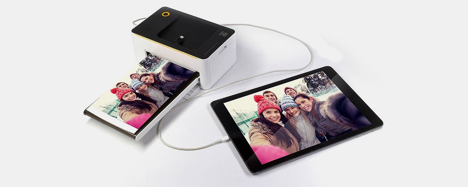 Now you can print photos directly from your iPhone, either wirelessly or by docking your iPhone on the PD-480 Photo Printer Dock PD-480 ($139.99) from Kodak. The dock can even charge your iPhone as well. Kodak also sells an Android version, although the iPhone version has a microUSB to Lightning adapter, so that may be the only difference.