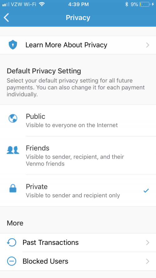 Privacy and security are the major concerns when using Venmo or any other payment app. Venmo does not have the same buyer and seller protections as Paypal and should only be used to send money to trusted individuals, such as friends or family, or to any of the approved online retailers. You can make your transactions private so they won't show in the public feed. Just tap on the top left three bars and select Privacy to control who can see your transactions. Further down on the same menu, you can select security options such as creating a PIN or to change your password.