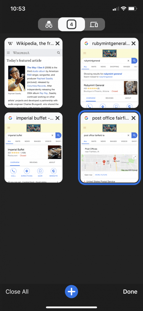 Being able to sync Chrome tabs across devices is extremely helpful as I access the internet from my home and job, and on the go. I can work remotely without trying to remember which articles I was reading last, because the tabs are still open on Chrome. The tabs are also arranged neatly in a grid, so I just have to scroll and tap to pick up where I left off. Chrome also has a simple menu to add pages to Bookmarks or Reading List to read later. Also I can link my Google Drive to Chrome's address bar, so I can access anything from my cloud storage via the web browser.