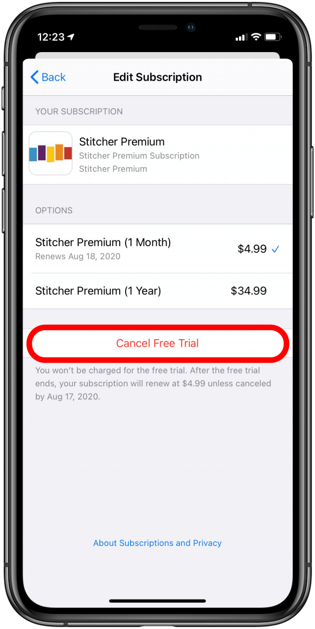 The first thing to check is, how does the free trial work? Most apps will allow you to cancel your app subscription while still getting the free trial. If this is the case, cancel the app as soon as you download it so you don't have to give it another thought. Here's how to cancel an app free trial so you can continue to use it until the trial ends: