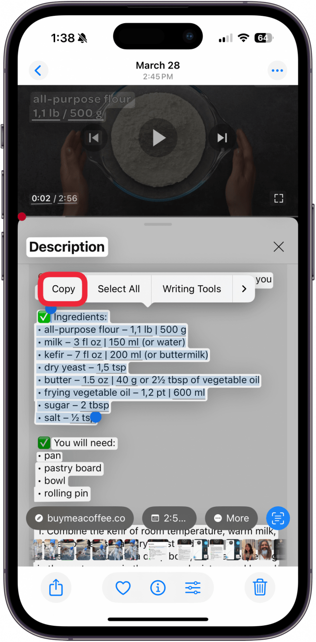 - If you want to copy the selected text to paste it into another app, tap Copy. You can paste it into any other app, like Notes or Safari.