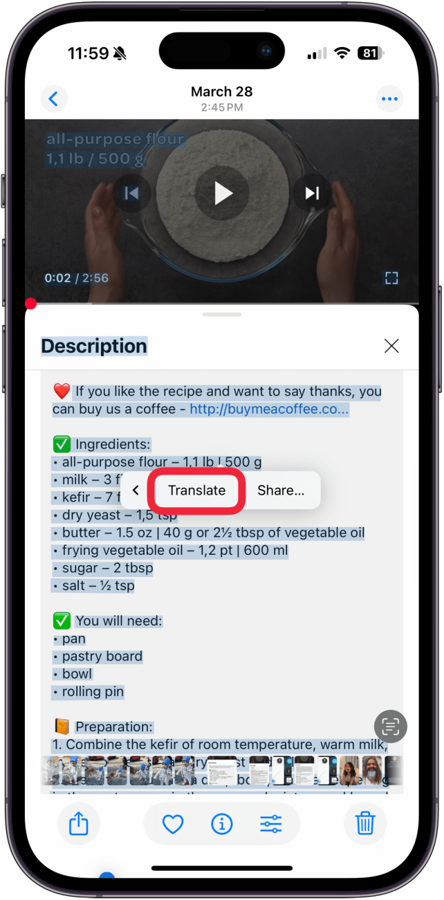 - To translate the text into another language, tap Translate. Use the Translate menu at the bottom of the screen to translate the selected text and copy the translation if you need to.