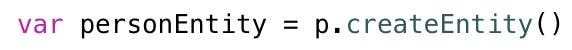 - Remove the explicit variable types from the code that calls the createEntity method on the Person object: