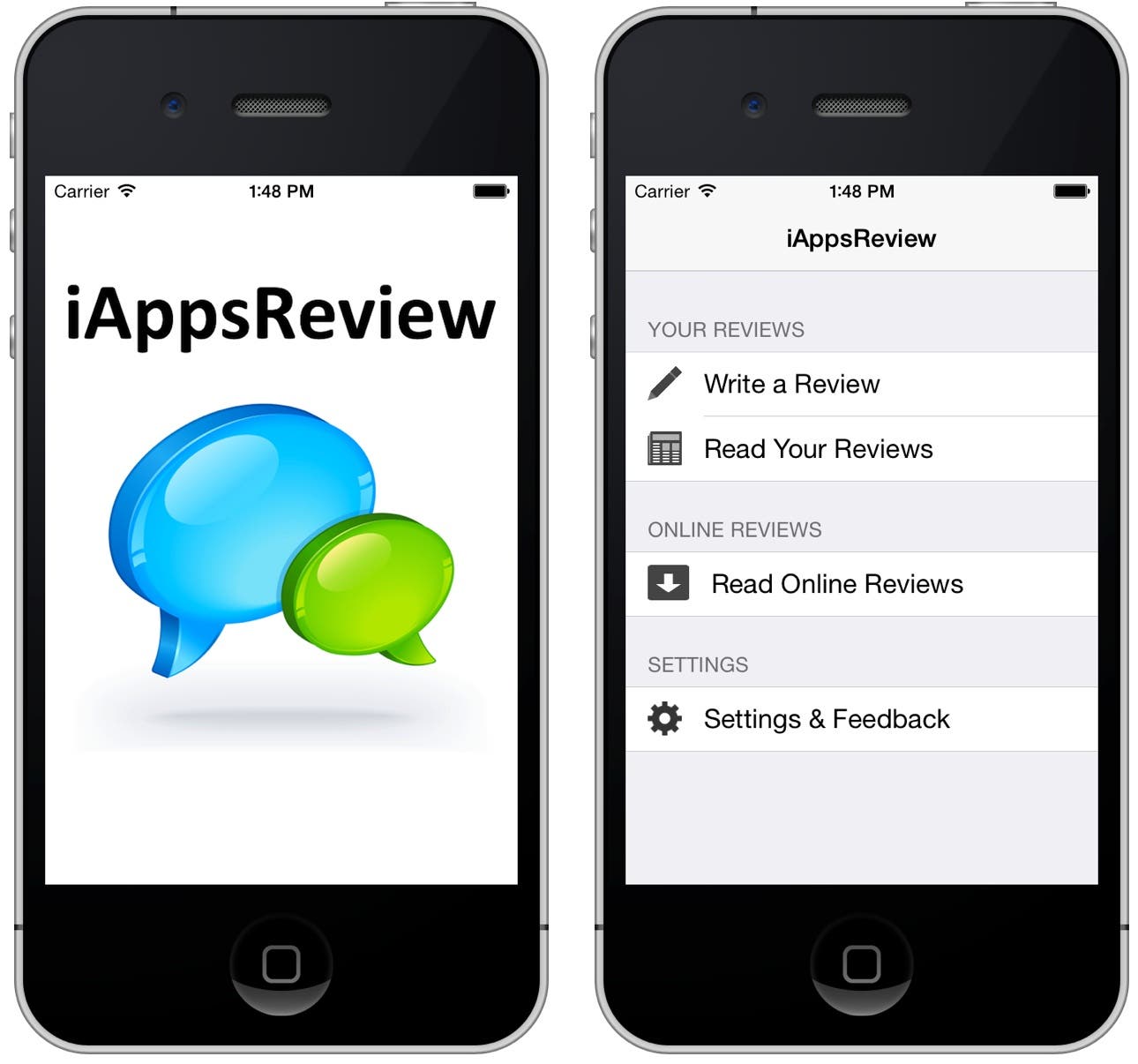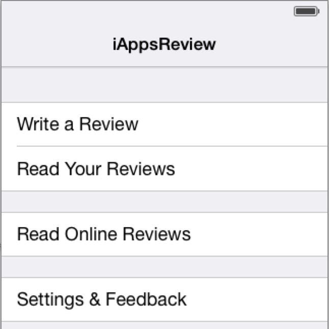 Now it's time to see how the App looks in the Simulator. In Xcode, click the Run button, and after several seconds you should see iAppsReview appear in the Simulator as shown on the left side of Figure 21. At first, the new app launch image you just added to the project is displayed. After a few seconds, the app launch image disappears and you will see the main iAppsReview scene as shown on the right side of Figure 28. In a future post, I'll show you how to make the app launch image fade slowly rather than disappear abruptly from the screen.