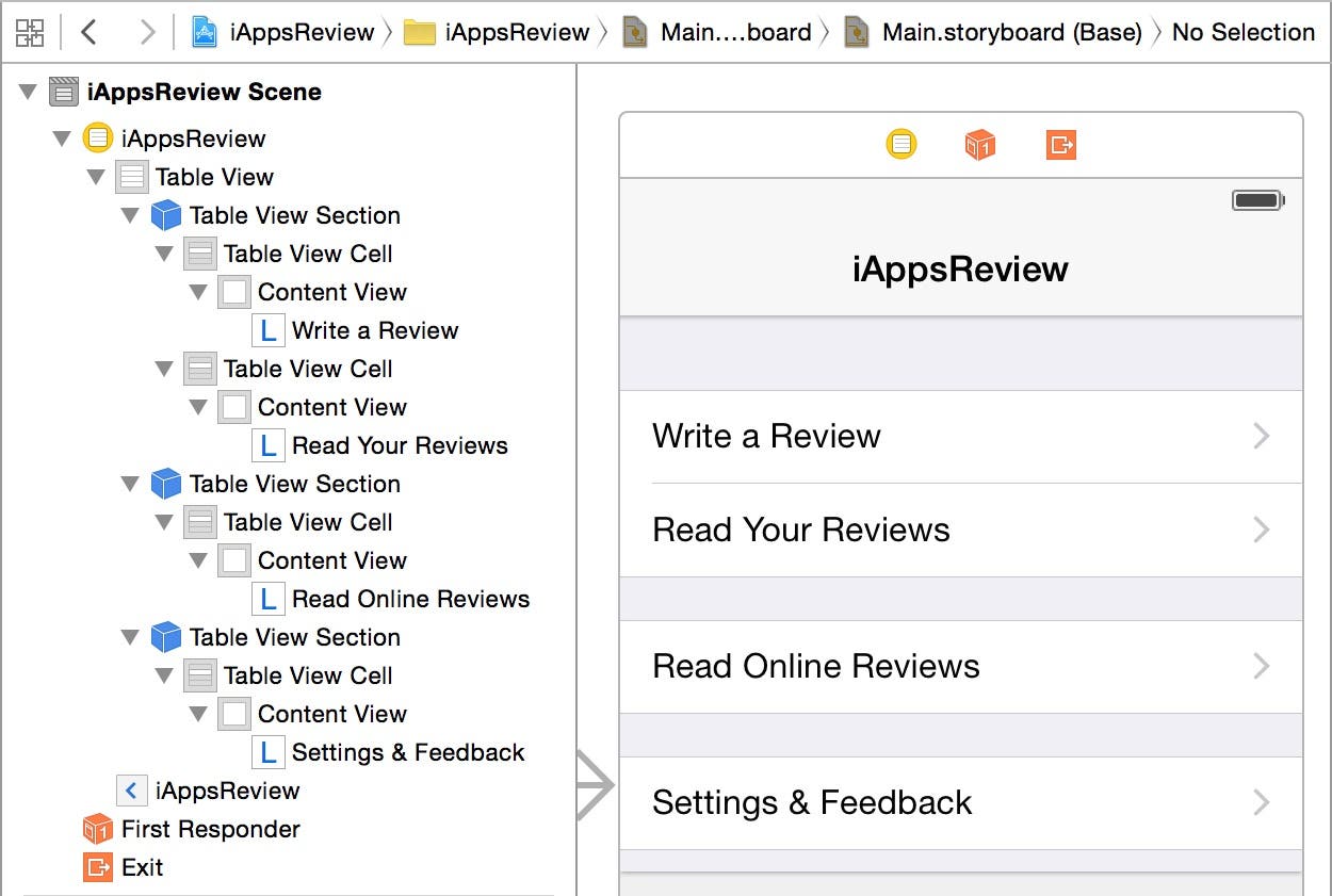 In my previous post, we started the process of creating a prototype of an iPhone app called iAppsReview. You learned how to create a new project in Xcode, how to add a storyboard to a project and configure it, and how to add a navigation controller to a storyboard. You had just begun to configure the table view, which we will finish in this post. You'll learn how to create multiple sections in a table view, set section header text, add images to a project, and incorporate them in table-view cells.