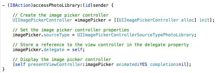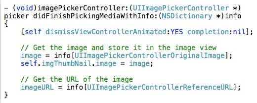 | Figure 3 - This method gets fired when the user selects an image from the photo library. |