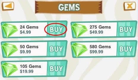 With each action you make in the game, like purchasing a dragon, you are required to wait a specific amount of time for progress. You can speed up the wait times with collected or purchased gems, but they aren’t easy to come by in the game. This is where the in-app purchases come in. Gems, food, and coins can be purchased using real money, with varying amounts of gems taking the top three spots in most popular in-app purchases.