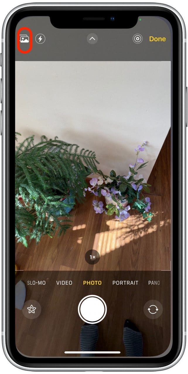 - Above the shutter button, swipe right to highlight VIDEO and the button will turn red for recording.