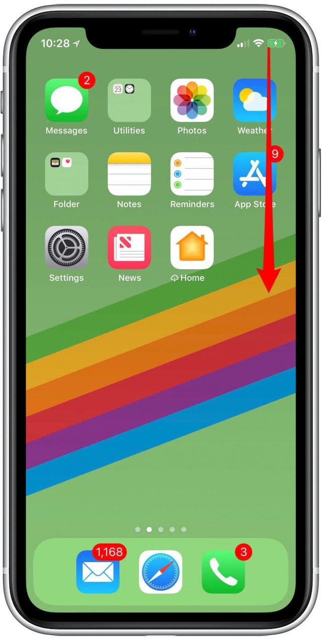 - To open the Control Center, swipe down from the upper-right corner of your Home screen if you have an iPhone X or later model. Make sure to swipe as close to the corner as possible or you may open the Notification Center instead.