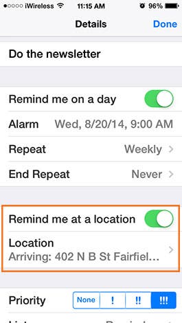 One of the coolest things about iOS Reminders is the ability to set location-based remindersReminders determine when you are leaving or arriving somewhere through geofences. But what if you keep receiving a location-based reminder everytime you happen to be near but not arriving at or departing from the location? Or what if you want to get the reminder sooner as you approach the location? Just make the location's geofence bigger or smaller.