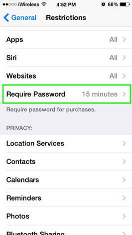 To require a passcode for every purchase, go to Settings>General>Restrictions and tap Enable Restrictions.