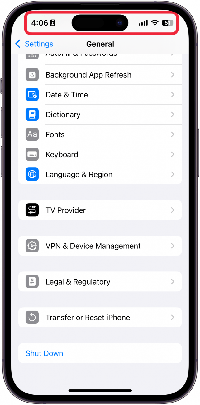 - Open any app, and simply tap either the clock, the battery indicator, or even the Dynamic Island itself.