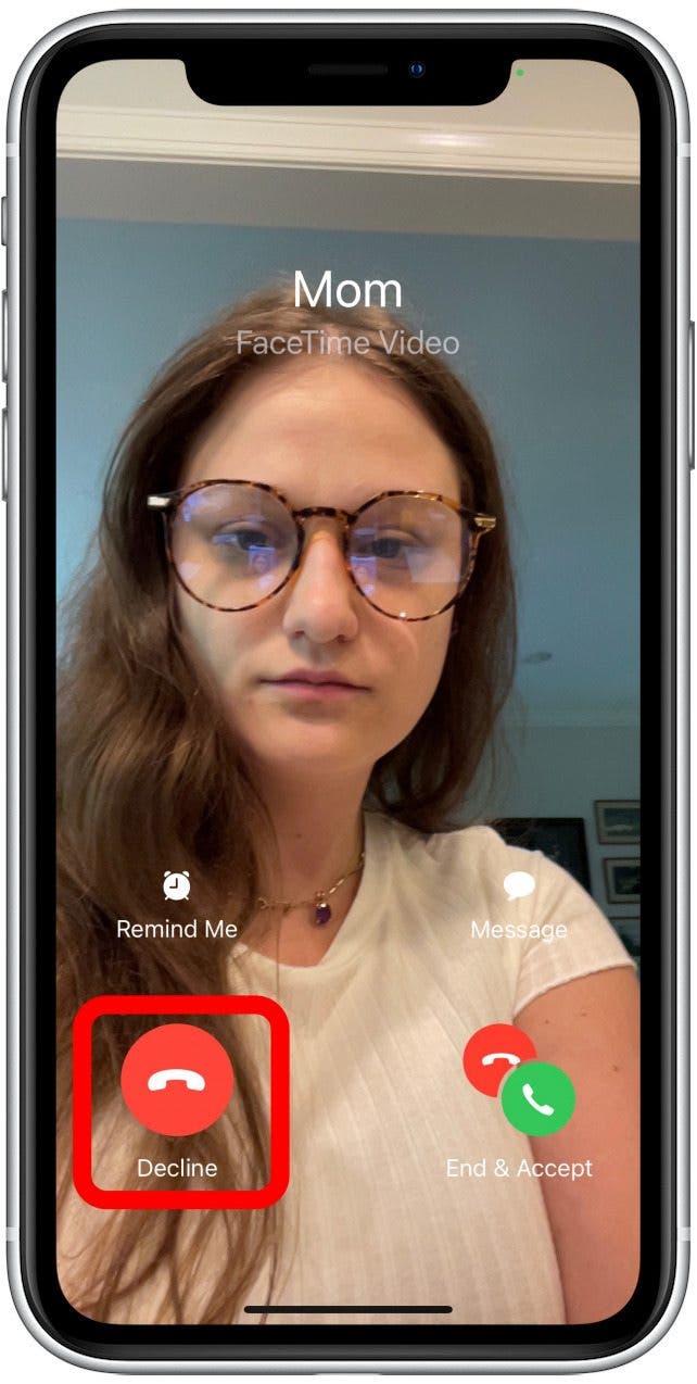 - To reject an incoming call and continue your current FaceTime call, tap Decline.