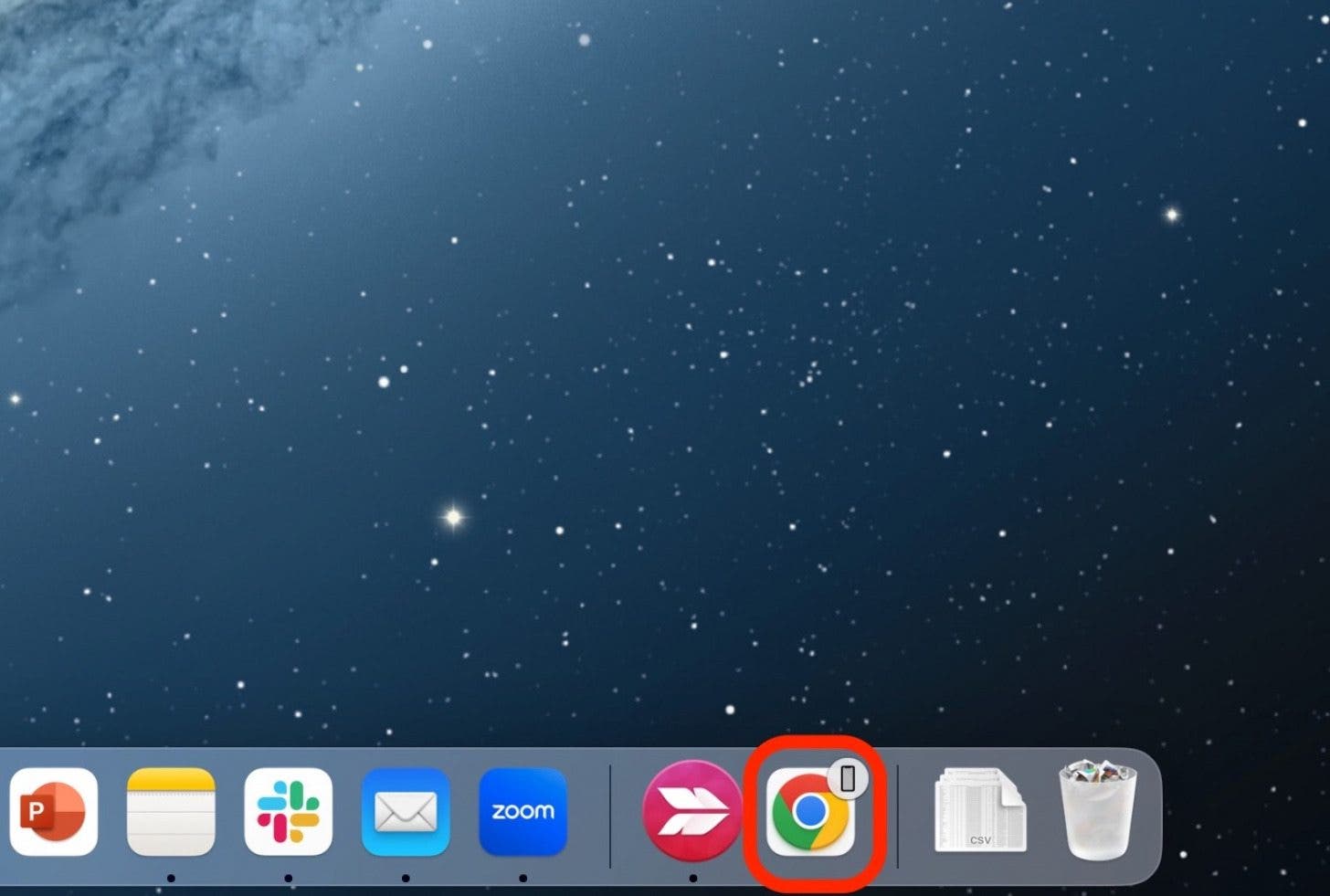 - On your Mac, you will see that app appear in the Recent Apps section of the Dock with a small icon indicating what device you are using it on. Click it.