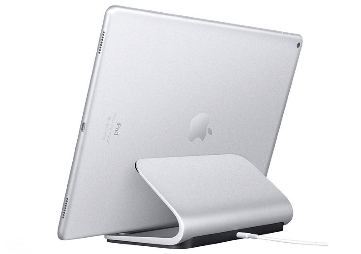 The LogiTech Base uses smart connectors to connect your iPad Pro to the stand and charge it simultaneously. The Base is a sleek curve that turns your independent iPad into its own desktop. It sits at a perfect angle for viewing movies, and would work perfect for docking your iPad Pro while working in the kitchen, as your assistant and alarm clock by your bed, or even as a second display using an app such as Duet Display.