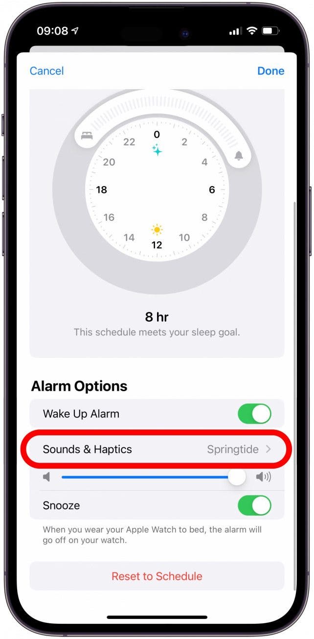 - Here you can tap the different options to hear and feel how they will wake you up. The haptics begin first to wake you up more gently, and then the music begins playing quietly and gets progressively louder as the alarm continues.