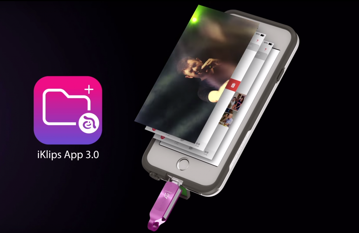 If you’re using a waterproof case, iKlips DUO+ will still be able to reach the Lightning port. It’s designed to work with any case, even the bulky ones. Share your files between all Apple devices and even your PC. Store and manage pictures, videos, documents, backups, and data using the iKlips 3.0 app. Need a little privacy? You can easily set a password and even enable Touch ID to keep your information fingerprint protected.