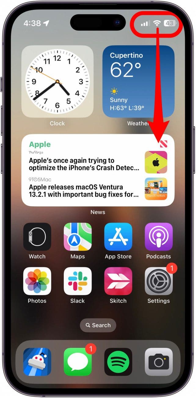 - Swipe down from the upper right to open the Control Center.