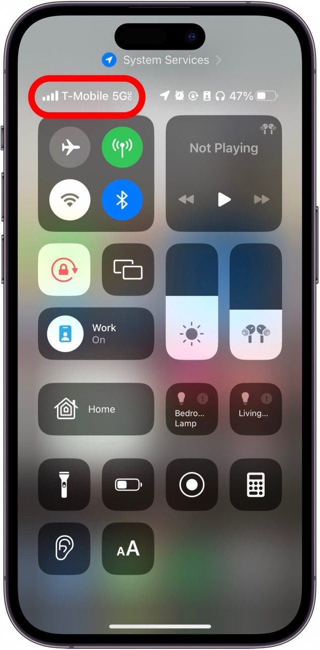 - On the left, you’ll see your network status. If you see a 5G or LTE symbol, you should have no problem downloading images.