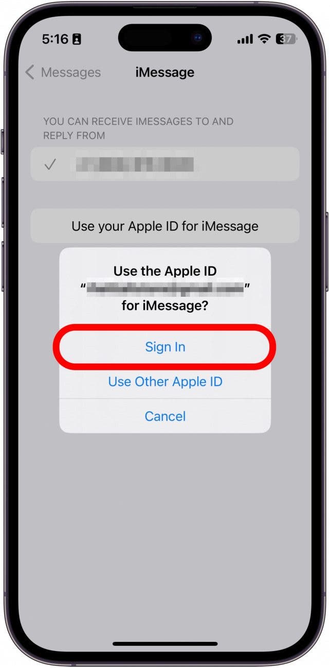 After you sign back into iMessage with your Apple ID, see if tap to download works. If you are still having issues with tap to download not working, the problem might be your iPhone’s storage.