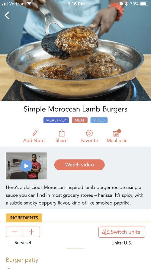Fit Men Cook has nearly 400 recipes (with more continually being added) that cover categories including Low carb, Meal prep, Vegan, Budget, Post-workout, High Protein, Snacks & Sweets, and more. When you come across a recipe you like, tap on it and then tap Add to Favorites for later use. Or, with the premium ($0.99/month) plan, add the recipe to a weekly meal plan so you can easily shop for and prep everything you need.