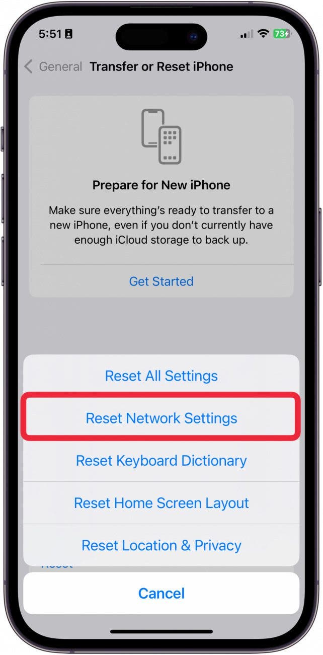 The last option I would suggest before taking your iPhone to the Apple Store to speak with a professional is to reset your Network Settings. Resetting your network settings removes your Wi-Fi connection and means you’ll have to enter Wi-Fi passwords again to gain access. Make sure you write down any Wi-Fi passwords you need to remember before doing this. It will also reset your cellular settings.