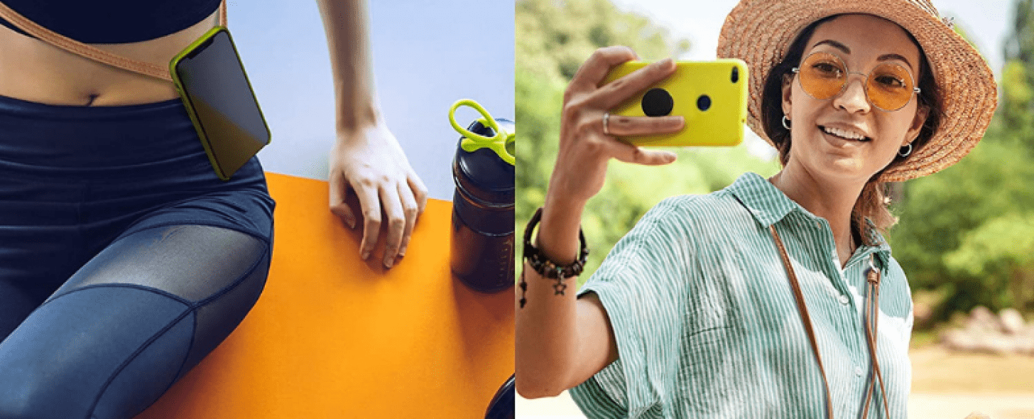 The CASEBUDi Crossbody Phone Lanyard comes with a CASEBUDi Disc. You can easily stick the adhesive Disc to any phone model and use it as a grip or to stand your phone up on a surface. It can also be used to attach or detach the lanyard quickly when needed. The lanyard doesn't obscure the camera, and it is long enough for you to take photos and make calls and texts without removing your phone.
