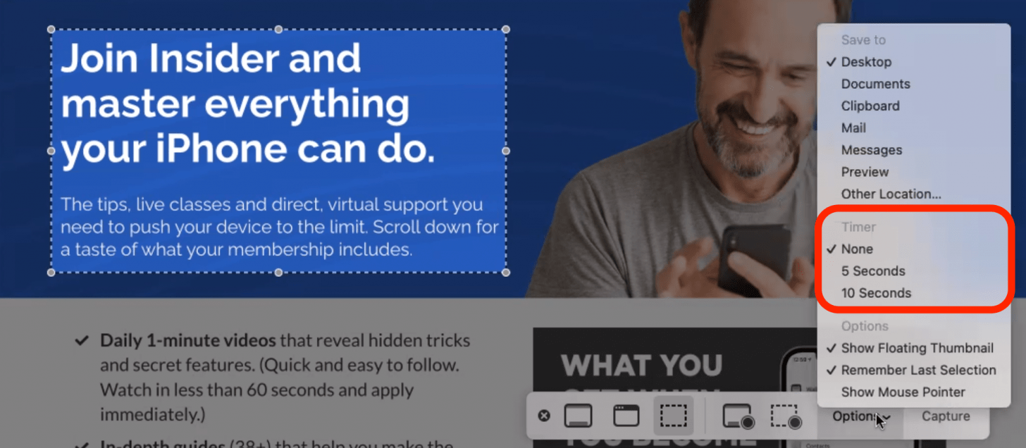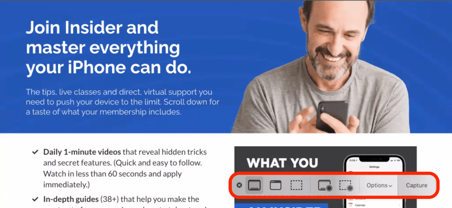 Now you can take the perfect screenshot each and every time! While using the screenshot menu is a great way to get more nuanced screengrabs, you can still use keyboard shortcuts to take screenshots. You can also press Shift+Command+3 to capture your whole screen, Shift+Command+4 to capture a portion of your screen, and Shift+Command+4+Spacebar to capture a specific window or menu.