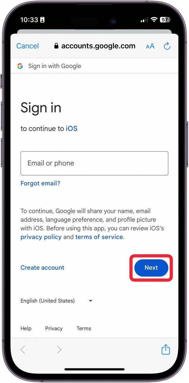 - Then, enter your account information. Tap Next. Follow the on-screen directions until you’re returned to Mail Settings.