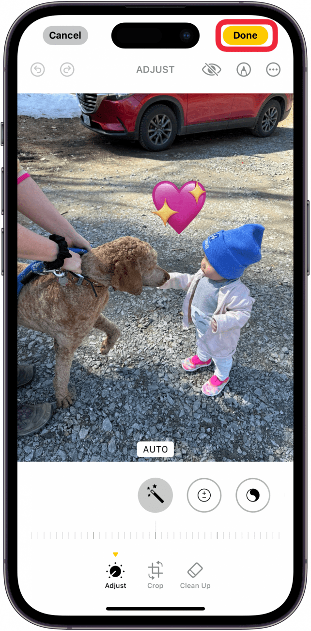 - Once you're satisfied with the size and placement, tap Done to close the editing menu.