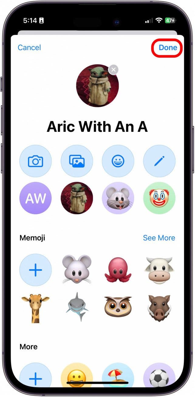 - Select a unique picture, emoji, or Memoji for each of your contacts.