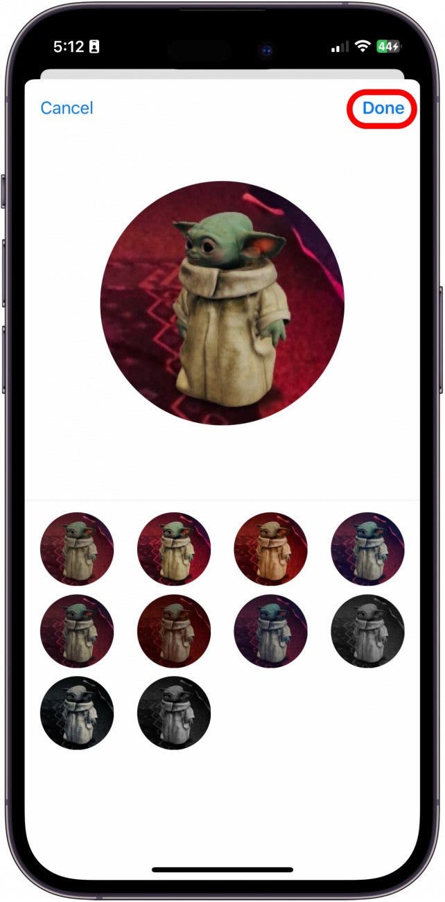 - You can tap to select a different filter for the contact image and tap Done when you're finished.