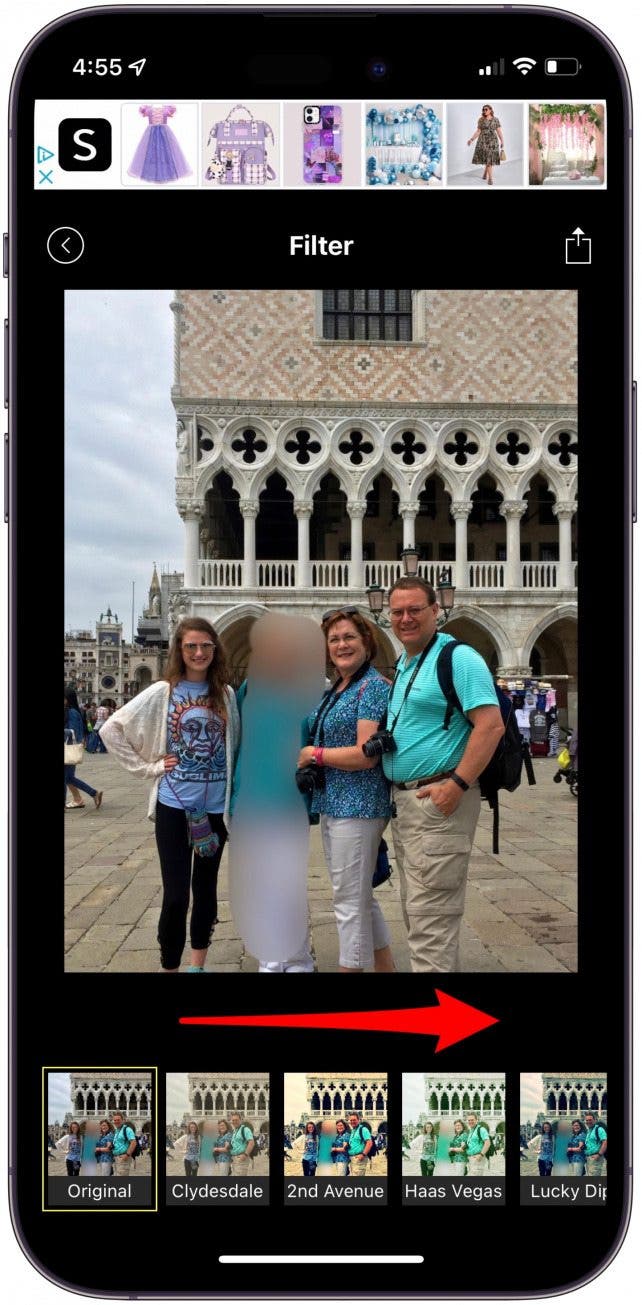 - Swipe through the app's filter options.
