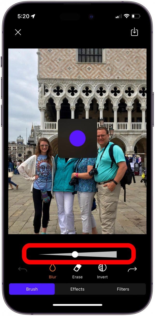 - You can adjust the size of your blur tool.