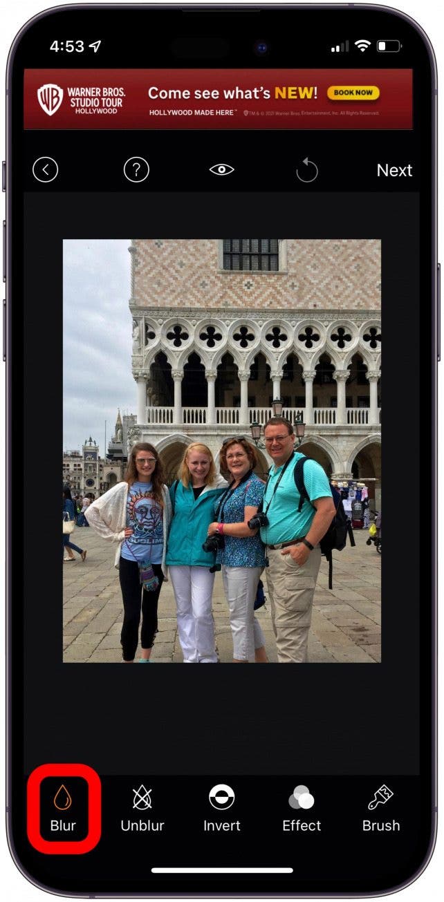 Blur Photo is an easy-to-use app that will give you a very opaque blur anywhere on your photo. First, download Blur Photo from the App store and then we can get started. For more cool tips and tricks about how to use your iPhone, sign up for our Tip of the Day newsletter!