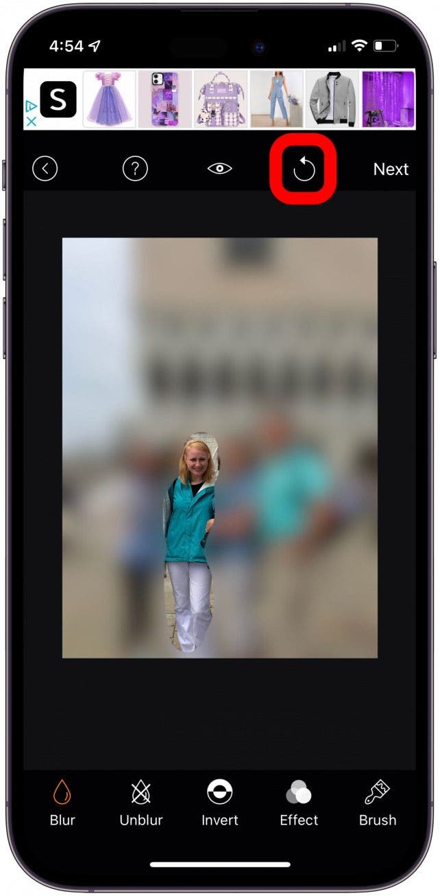 - Tap the Invert button to reverse the blur, leaving only your selection in focus.