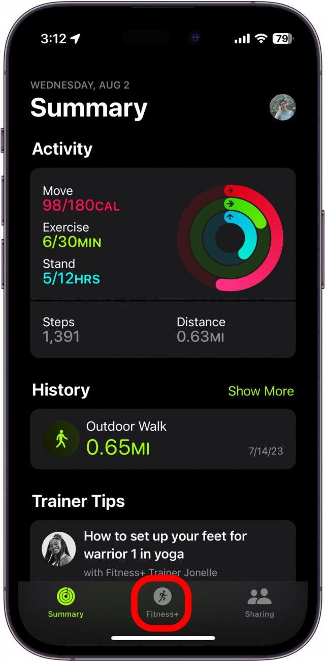 - Tap the Fitness+ tab.