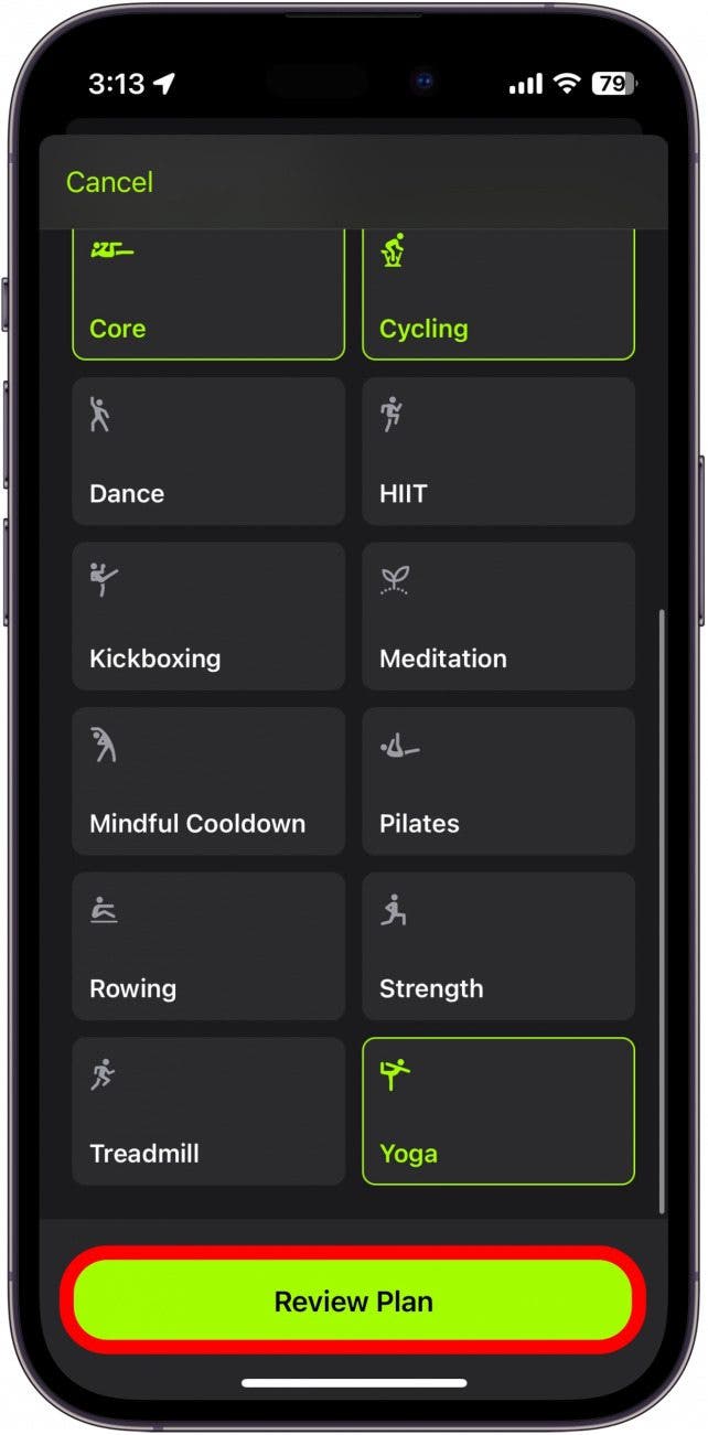 If you have a subscription to Apple Fitness+, you can build a custom workout plan. Instead of starting each workout individually, from scratch, you can choose what activities you’ll do, for how long, and for how many weeks. For more iPhone fitness tips and tricks, be sure to sign up for our free Tip of the Day newsletter. Now, let’s take a look at how to build a custom Apple Fitness Plus workout plan: