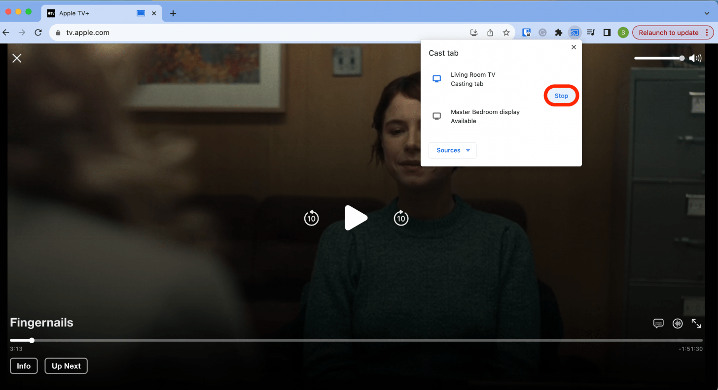 - You'll see "Casting tab" text appear beneath your Chromecast device. This means the Apple TV content is being cast to your Chromecast.