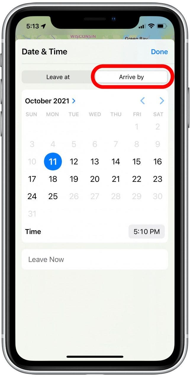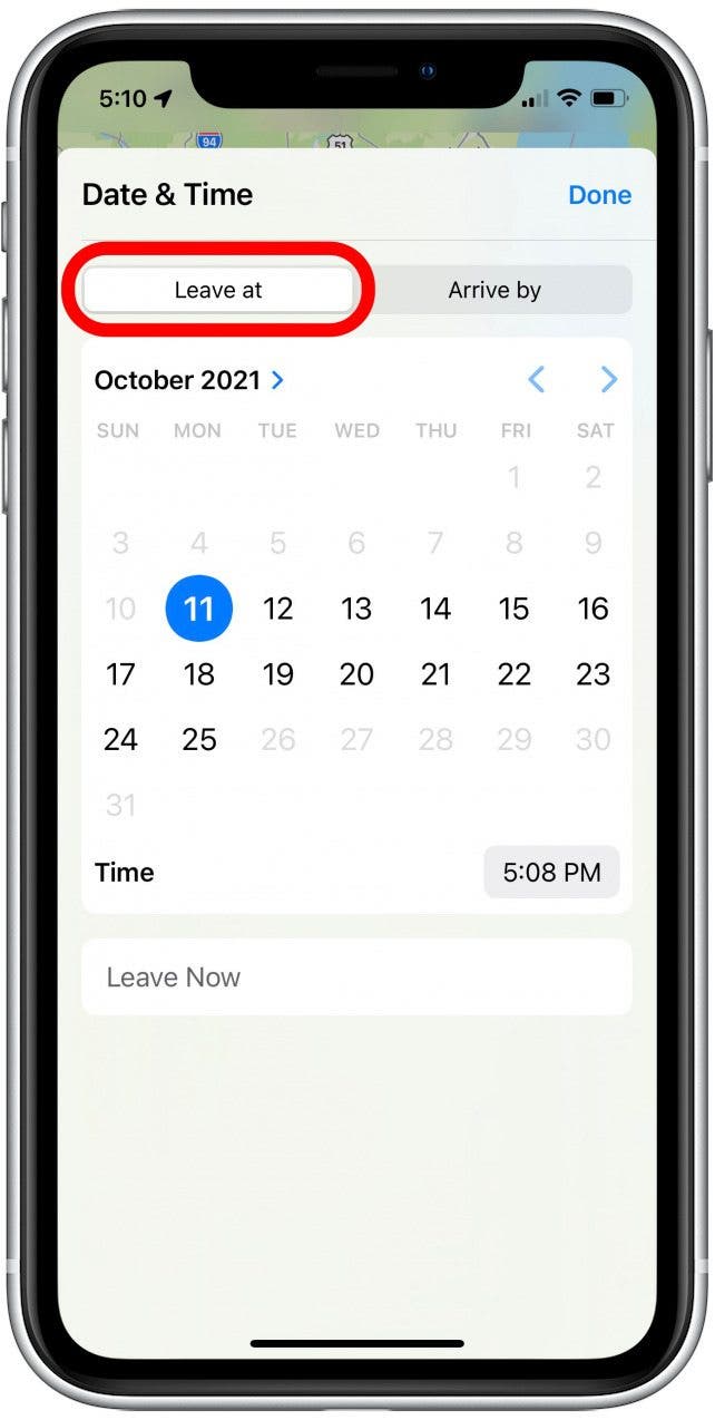 - You can also select Leave Now to reset back to the current date and time.
