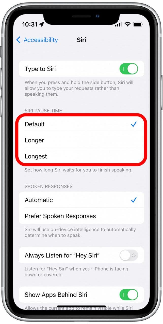Now that you know how to set Siri to your preferred response time, you can avoid having Siri interrupt you before you finish speaking your requests! If you use Siri often, you can also check out how to view your most recent conversation with Siri.