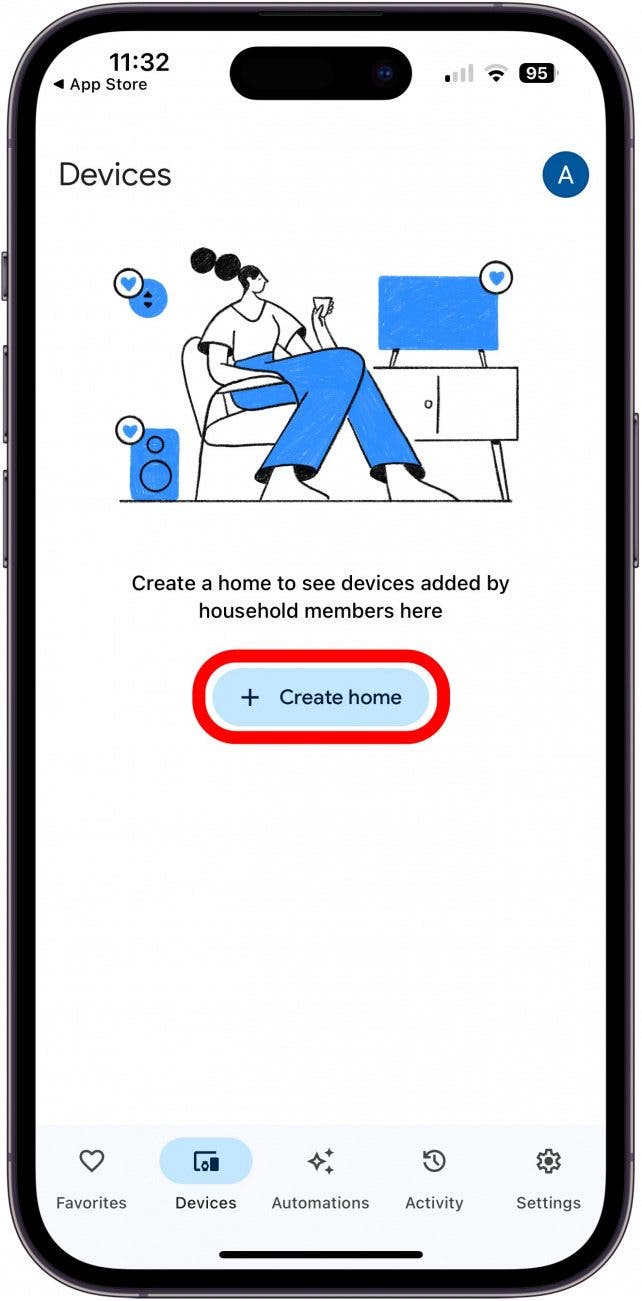 - If you've never used the Google Home app before, you'll see an option to set up a home. Tap Create Home and type a nickname.![]()