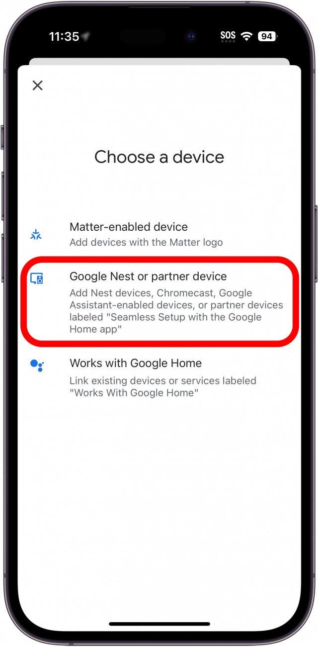 - Tap Google Nest or partner device (this includes Chromecast). ![]()