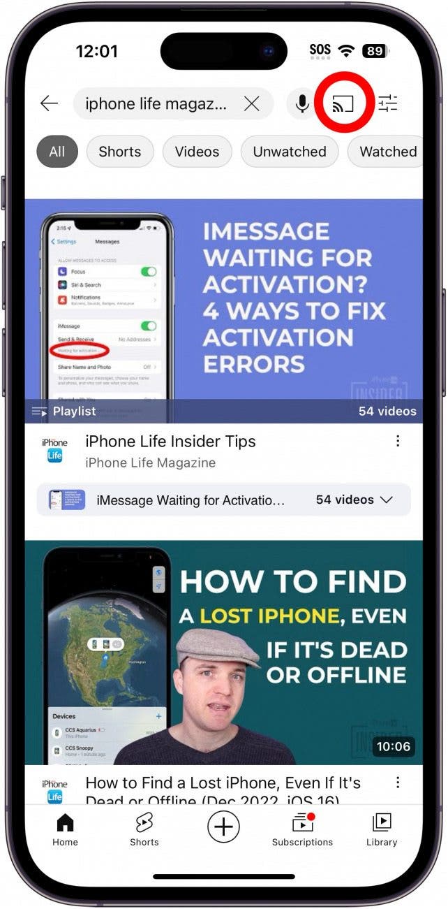 - You can also tap the video you want to watch, then tap the cast icon to cast the video. In most apps, if you don't see the icon, you can tap on the video to make it appear.![]()