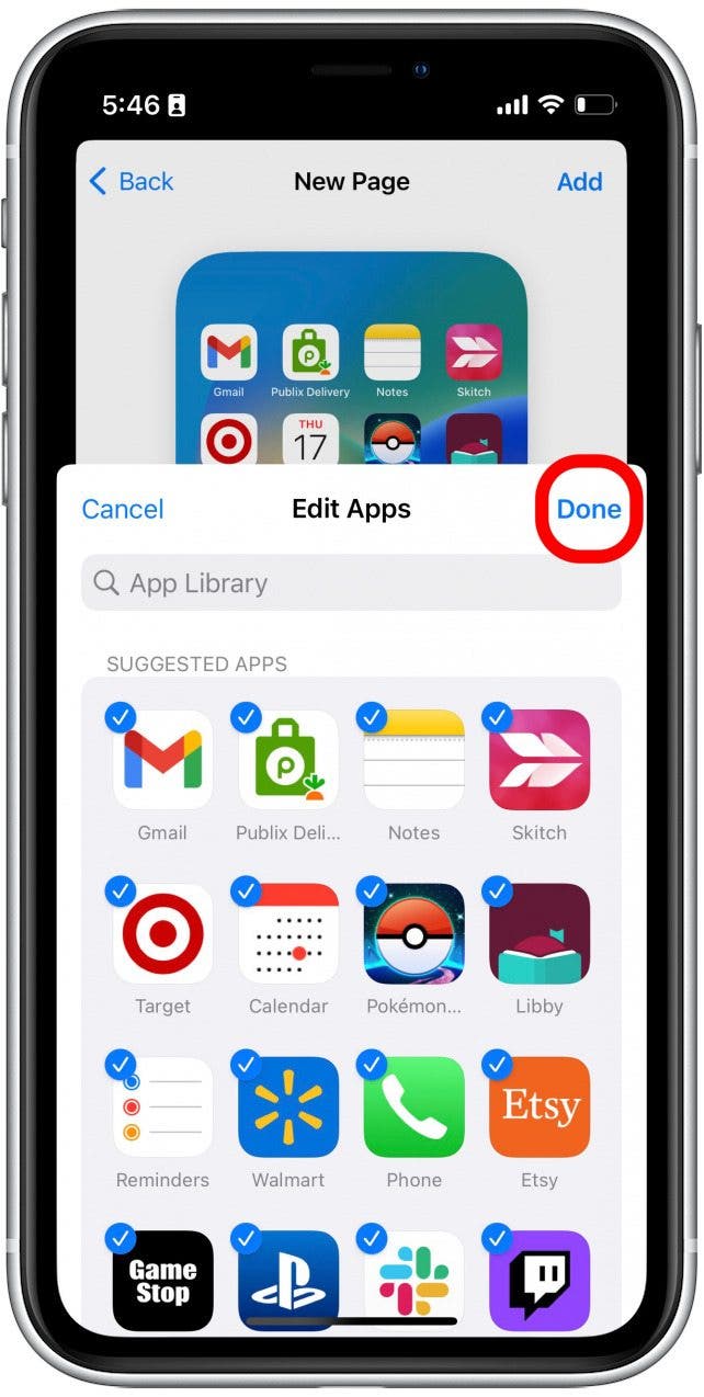 - Tap each app to add or remove it from this Home Screen. Tap Done when you are satisfied to continue.